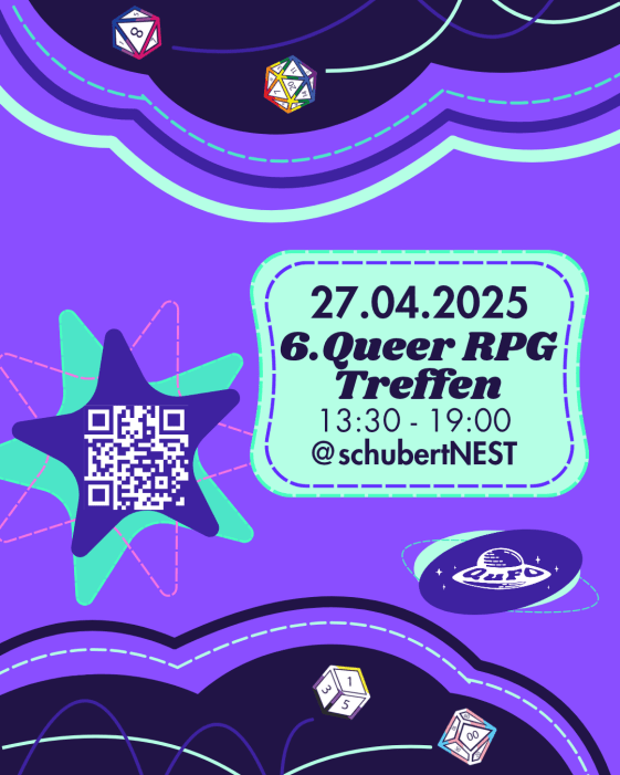 Du bist queer und möchtest mal ausprobieren, ob RPGs etwas für dich sind? Oder du findest einfach keine Zeit/die richtige Gruppe zum Spielen? Dann komm zu unserem SECHSTEN queer RPG Treffen! 🤗🌈🎲