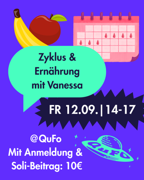 Soli-Beitrag: 10 € inkl. Handout, Snacks & Getränke In kleiner Runde (6 Plätze) tauchen wir ein in die Welt von Zykluswissen & wie du dich selbst mit Essen unterstützen kannst