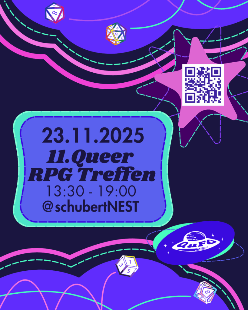 Es ist wieder soweit, unser Queer RPG geht in die 11. Runde, diesmal haben Alex und Mika Oneshots für euch vorbereitet. Anmeldung über die Links.Alex(any pronouns) leitet To Kill a […]